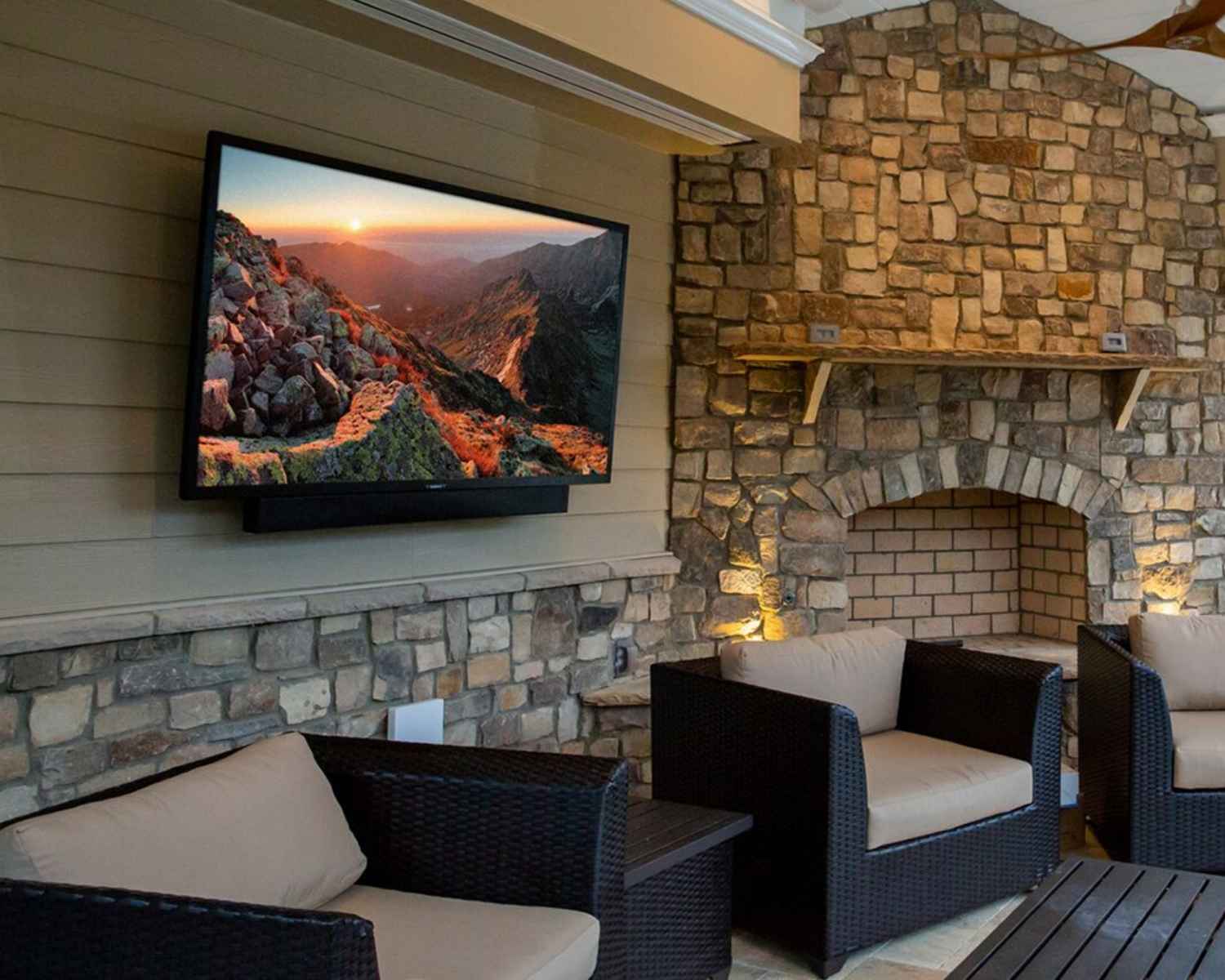 We use premium, weather-resistant products designed to perform beautifully in the elements. From discreet landscape speakers and all-weather TVs to elegant lighting control, our installations deliver the same quality and reliability outdoors that you expect indoors.