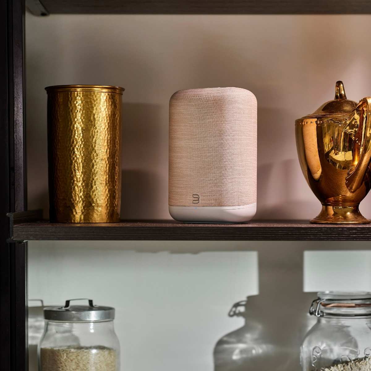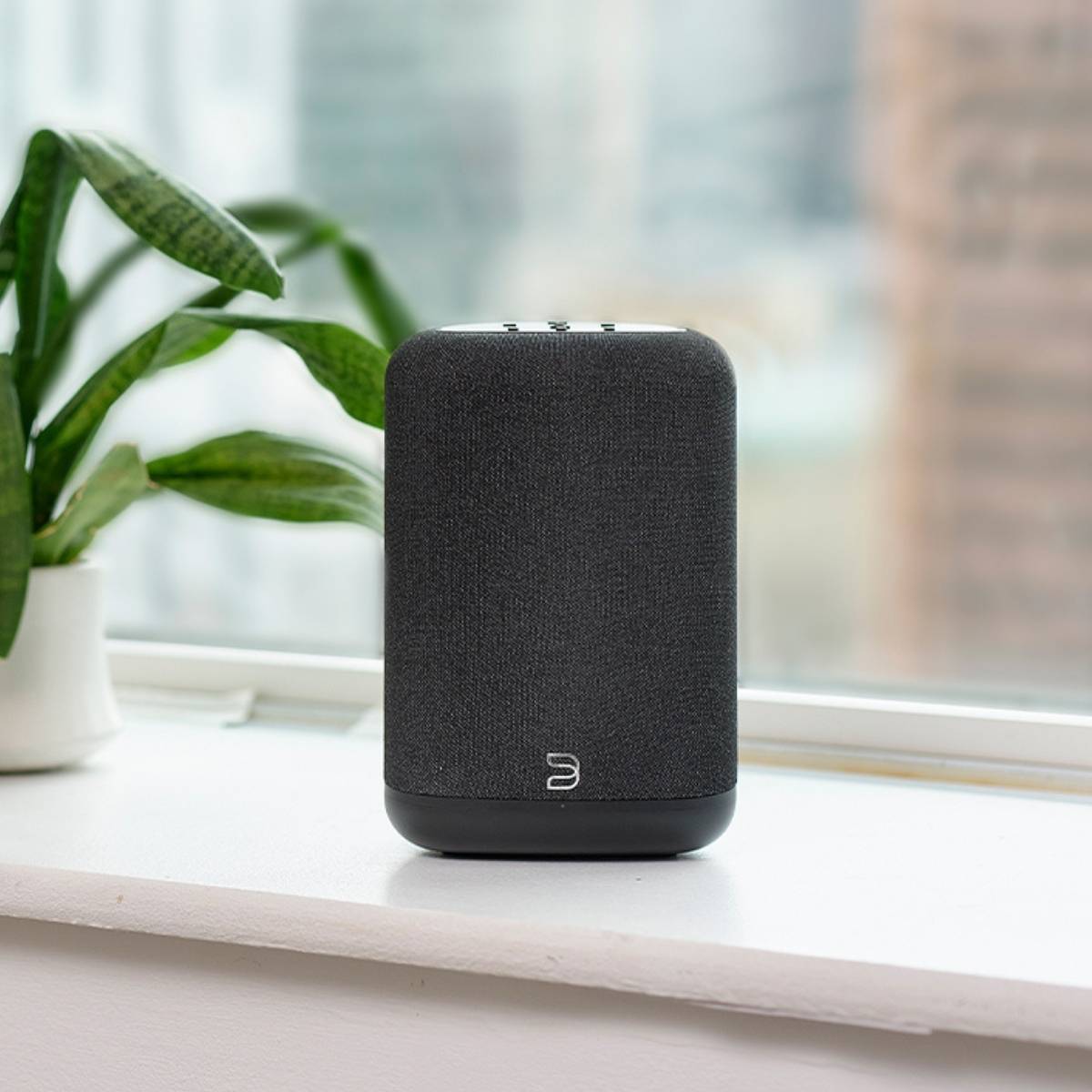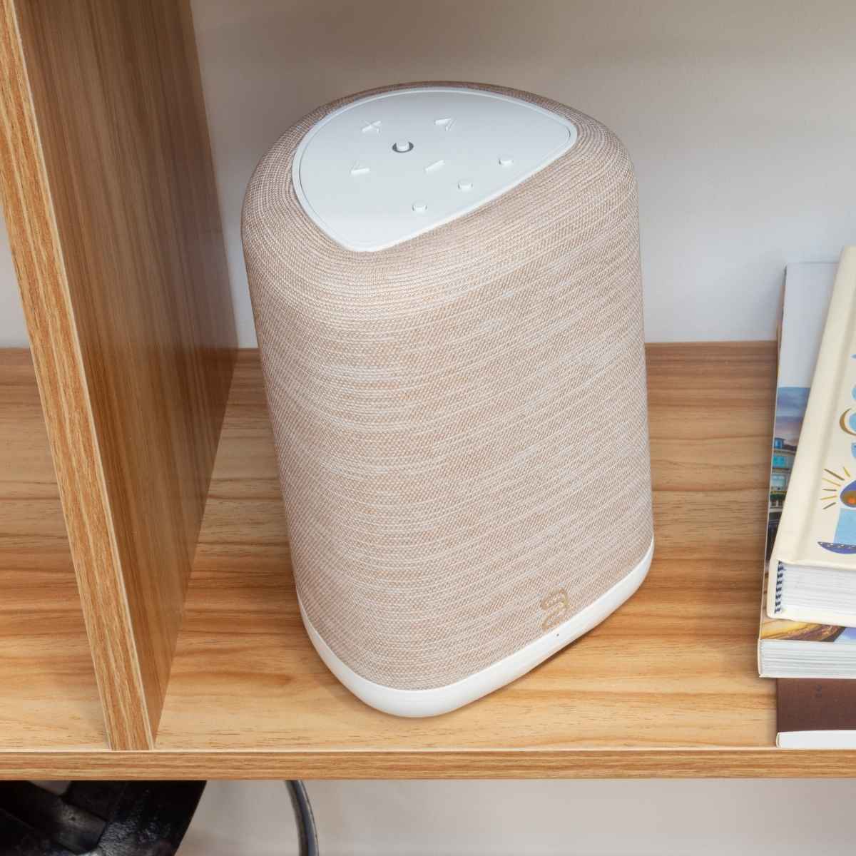 - Modern compact speaker that blends easily into any room or décor